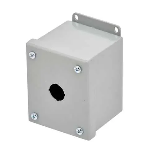 The PB1M-4XS is a tensioned, surface-mounted push button enclosure designed to protect control components within compact control panels. Its 304 stainless steel construction, 16 gauge wall, and NEMA 4X protection ensure reliable performance in damp, dusty, or washdown environments. It supports quick maintenance with a removable cover and screw-type access, making it ideal for automations and machine control applications where reliability and ease of service are critical.