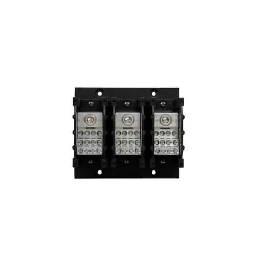 PDB370-3 Eaton: Eaton Bussmann series PDB power distribution block, IP-20 Finger-safe, 600 Vac, 600 Vdc, 310 A, Three-pole, SCCR: 200 kA (8 To 4 AWG), 100 kA (14 To 4 AWG), Panel, Tin-plated aluminum connectors