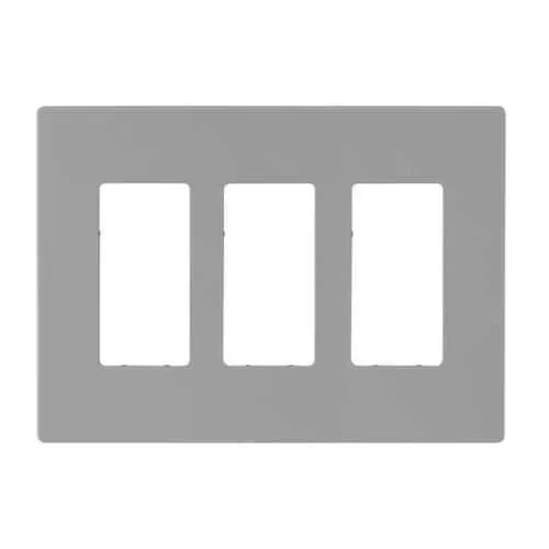 PJS263GY Eaton: Eaton Screwless wallplate, Screwless, Gray, Decorator Cutout, Polycarbonate, Three- gang, Mid-size