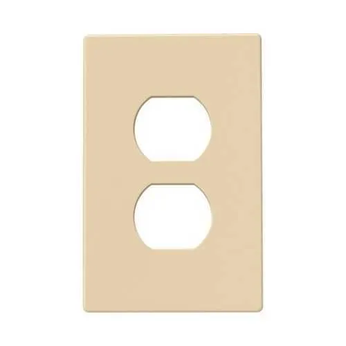 Feature: Screwless design eliminates exposed screws and minimizes contact with wiring surfaces. Business impact: Speeds up installation and reduces the likelihood of component wear or misalignment over time. Application: Ideal for retrofit projects and dense panel layouts where fast, reliable mounting is critical. Feature: Polycarbonate wallplate in ivory, mid-size single-gang. Business impact: Lightweight yet durable, with color-coded visibility to aid maintenance. Application: Suitable for control rooms, offices, and industrial environments. Feature: Duplex receptacle cutout designed for standard duplex devices. Business impact: Ensures compatibility with common wiring devices, reducing spares and waste. Application: Works with standard duplex receptacles across new builds and renovations. Feature: RoHS compliant, UL Listed and cULus Listed. Business impact: Ensures regulatory compliance and safer procurement across facilities. Application: Suitable for facilities with strict environmental and safety standards. Feature: 1-gang, mid-size form factor and dimensions: 4.87 in H Ă— 3.12 in W Ă— 0.08 in D. Business impact: Predictable footprint for space-constrained installations and easier coordination. Application: Fits standard wall openings in commercial environments.