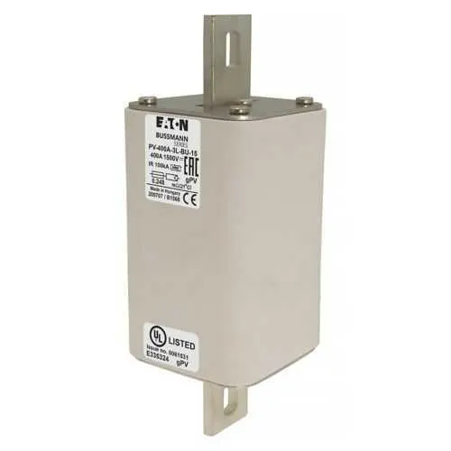 Feature 400 A rating with 1500 Vdc capability. Business Impact Enables protection for high-current PV strings and 1.5 kVdc circuits, reducing the risk of damage to inverters and combiners. Application Suitable for photovoltaic inverters, PV array combiners, and disconnects in both utility-scale and commercial solar installations. Feature 100 kAIC interrupt rating. Business Impact Delivers fast fault clearing to minimize arc energy and system downtime, improving overall plant safety and reliability. Application Essential for critical PV power paths where high interrupt capability is required in DC networks. Feature 3L gPV class with non-indicating design and blade-with-bolt-hole fittings. Business Impact Simplifies installation in standard enclosures, reduces wiring complexity, and lowers maintenance needs with a durable mounting solution. Application Ideal for bolted connection installations in 1500 Vdc PV systems. Feature 61 W watt losses and 296000 A2 I2T pre-arc energy. Business Impact Keeps energy losses low while delivering predictable protective performance, supporting efficiency and long-term operating costs. Application Suitable for continuous operation in PV protection schemes under typical solar operating temperatures. Feature CE Marked, RoHS Compliant, UL Listed, CSA Certified. Business Impact Ensures regulatory compliance across diverse markets, enabling smoother project approvals and warranty coverage. Application Relevant to global solar projects with stringent certification requirements. Feature Non-indicating, blade-with-bolt-hole design and 201 mm length. Business Impact Reduces visual maintenance needs and eases mounting in compact spaces, while ensuring robust mechanical integrity. Application Appropriate for restricted enclosure environments and retrofit scenarios.
