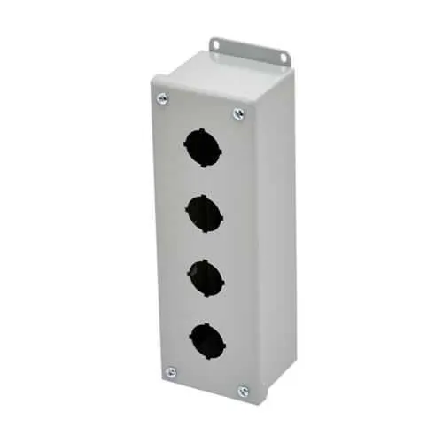 PV4 Push Button Enclosures from Eaton protect control stations and operator interfaces in demanding industrial environments. When panels face dust, oil exposure, and washdowns, lack of proper enclosure protection can lead to unplanned downtime and costly repairs. The PV4 line carries UL 508A, CSA C22.2, and NEMA 12 certifications, providing safety and reliability for harsh facilities. With a painted ANSI 61 gray finish on carbon steel, these enclosures couple rugged protection with straightforward installation, supporting surface mounting and external feet. This combination delivers substantial business value by reducing maintenance cycles and accelerating panel assembly in industrial automation projects.