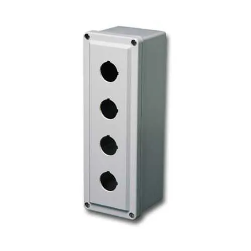 The enclosure uses fiberglass as the primary material and is finished in an unfinished gray surface. This combination delivers strong corrosion resistance, reduced weight, and cost-effective durability suitable for harsh environments, while maintaining compatibility with standard control components and surface-mounted installations.