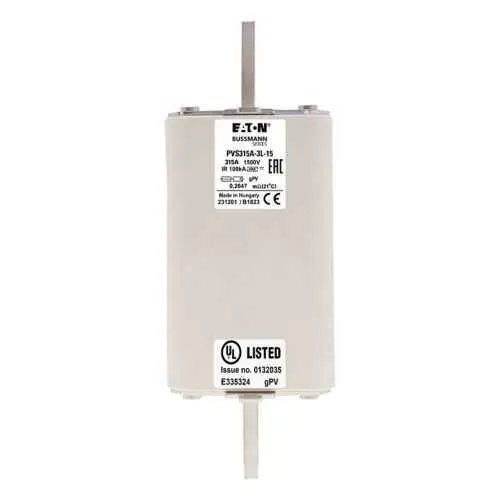 Eaton Bussmann series photovoltaic fuses protect solar arrays by safely interrupting overcurrent in high‑voltage DC PV circuits. Engineers and procurement teams often struggle to select devices that resist arc energy, minimize downtime, and withstand outdoor exposure. These fuses are CE marked, RoHS compliant, and UL listed, with IEC 60269 alignment for global compliance. With a 315 A rating at 1500 V in a 3L package and a top indicator, they offer robust protection plus easy field checks. Designed for PV strings and inverter protection, they help reduce maintenance costs and improve uptime. The PVS315A-3L-15 is compatible with SD3L-S-PV XL bases, supporting simple retrofit and scalable solar deployments.