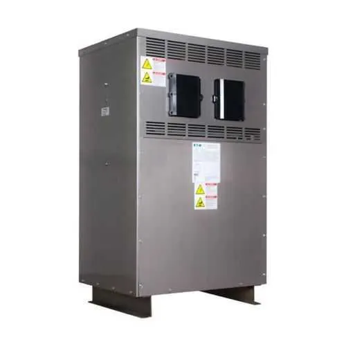 RV48M28T1216SDSD Eaton: Eaton Breaker integrated ventilated transformer, 112.5 Kva, BRKR INTEG XFMR, 3PH, 480-208Y/120, 150C Rise, Aluminum, DOE 2016, Two secondary breakers