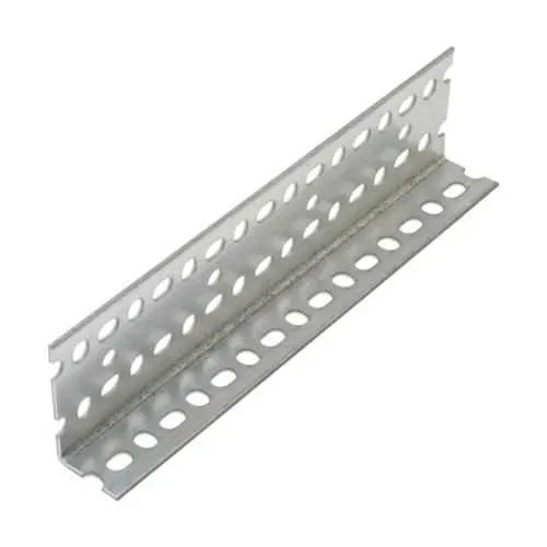 The slotted angle features a zinc-based finish with yellow zinc chromate for corrosion resistance, which improves outdoor durability relative to plain zinc. However, for outdoor or highly damp environments, confirm exposure conditions and, if needed, consult Eaton for environmental ratings or additional protective coatings beyond the standard finish.