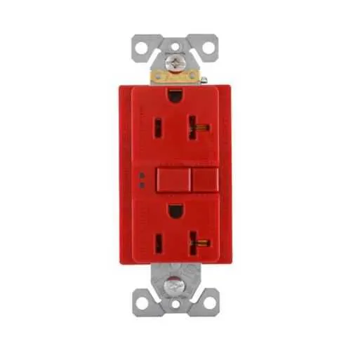SGF20FRD Eaton: Eaton GFCI receptacle,NAFTA compliant,Self-test,#14 - 10 AWG,20A,Residential,Commercial,Flush,125 V,GFCI,Back and side wire,Red,Brass,Receptacle,Polycarbonate,5-20R,Two-pole, three-wire, grounding