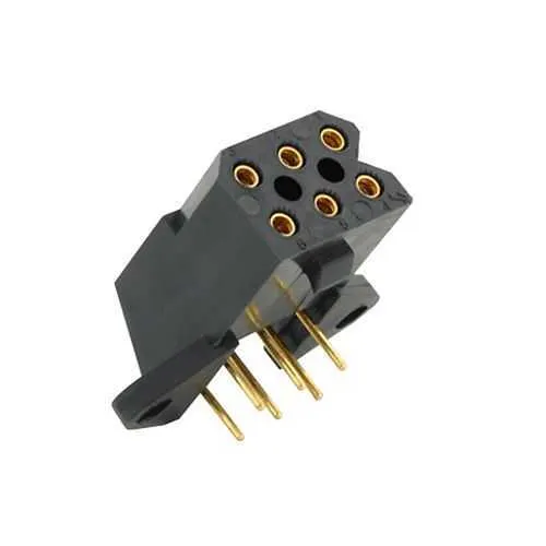 SMS6GE5 is a front‑mount panel receptacle with six gold‑plated PCB90° contacts. The connector supports a six‑circuit layout, with six cavities designed for a robust PCB interface. It delivers a compact 24.5 mm depth, 30.2 mm width, and 11.9 mm height, enabling reliable, space‑efficient panel integration.