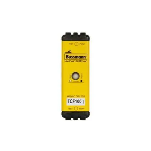 TCF100 Eaton: Eaton Bussmann Series Class CF fuse, TCF, time-delay, dual-element current limiting cube fuse, 100 A, indicating fuse, interrupting rating of 100 kA at 300 Vdc and 300 kA at 600 Vac