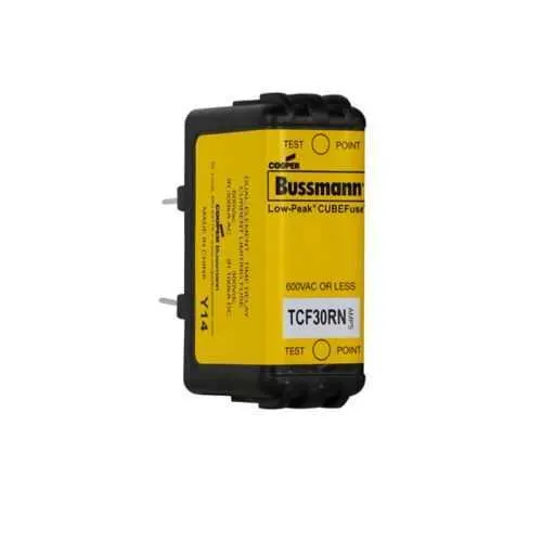 TCF30RN Eaton: Eaton Bussmann Series Class CF fuse, TCF, time-delay, dual-element current limiting cube fuse, 30 A, non-idicating fuse, interrupting rating of 100 kA at 300 Vdc and 300 kA at 600 Vac