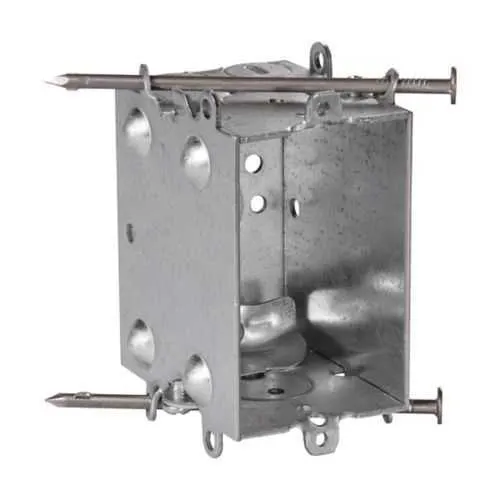 Feature: Steel construction and non-gangable design deliver a durable enclosure that resists impact and corrosion in interior and exterior environments. Business Impact: Reduced maintenance cycles and fewer replacements, improving uptime in service panels and outlet box installations. Application: Ideal for single-gang conduit runs in commercial spaces where reliability and quick access are critical. Feature: 12.5 cubic inch capacity supports standard NM cable terminations and accessories, enabling cleaner terminations and easier wire management. Business Impact: Faster installation and reduced labor costs; consistent box fill across common wiring schemes. Application: Residential, light commercial, and small industrial applications. Feature: Bottom knockout (1/2 in) and NM clamps improve conduit security and wiring ingress. Business Impact: Simplified field routing and compliant cable protection; reduces rework. Application: Wire-run planning in retrofit projects. Feature: Lightweight steel body (0.64 lb) and compact footprint (3 in L x 2.5 in H x 2 in W) offer easy handling. Business Impact: Lower installation time and safer transport on job sites. Application: Tight spaces with limited access. Feature: NEC/CEC compliance and Ordinary/Non-Hazardous Locations rating provide regulatory confidence. Business Impact: Streamlined approvals and reduced risk during inspections. Application: Commercial and industrial facilities with strict electrical codes.