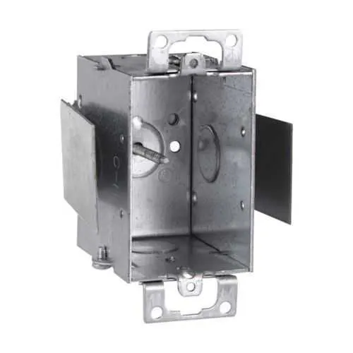 Conduit connects through the provided knockouts with a 1/2 in size on both ends. The box uses a snap-in, gangable design with no clamps required, which speeds field terminations and reduces the number of fittings needed for panel wiring.