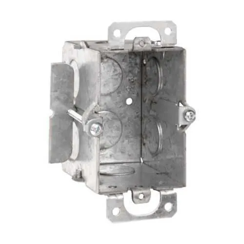 Feature: Steel switch box construction provides robust protection in industrial environments. Business Impact: Reduces field damage and maintenance costs while improving reliability of terminations. Application: Ideal for control panels and junctions in ordinary locations where durability and straightforward wiring are required. Feature: Conduit entry configured as Conduit (no clamps) with one end knockout and one bottom knockout. Business Impact: Simplifies wiring setups and minimizes accessory purchases, cutting install time and error potential. Application: Fits standard 1/2 inch conduit fittings in tight spaces. Feature: 12.5 cubic inch internal capacity with dimensions of 2 in (length) x 3 in (height) x 2.5 in (width). Business Impact: Accommodates typical field wiring without overcrowding, reducing panel size and cost. Application: Suitable for compact control enclosures and space-limited installations. Feature: Gangable design and ears for mounting ease. Business Impact: Enables scalable multi-box configurations, saving cabinet space and simplifying expansion. Application: Quick, modular upgrades in growing control systems. Feature: Material and compliance features: steel construction, NEC/CEC standards, Ordinary/Non-Hazardous Location rating. Business Impact: Ensures regulatory compliance and safer operation, minimizing risk and rework. Application: Suitable for standard industrial environments with regulatory requirements.