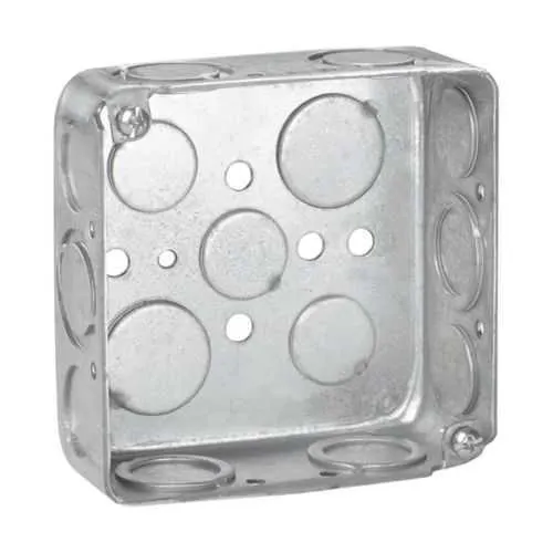 TP405 Eaton: Eaton Crouse-Hinds series Square Outlet Box, (3) 1/2", (2) 3/4", 4", Conduit (no clamps), Drawn, 1-1/2", Steel, (4) 1/2", (6) 1/2", (1) 3/4" C, 22.0 cubic inch capacity