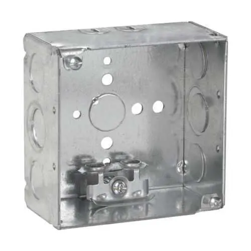 The TP431 offers a compact 4-inch box size with a generous 30.3 cubic inch capacity, delivered in welded steel that withstands vibration and impact in demanding environments. This combination translates to faster wiring, less rework, and longer service life in control panels and junction boxes. AC/MC clamps are included, reducing vendor parts and enabling quicker field assembly with a consistent clamp footprint across jobs. Side knockouts include four 1/2 inch, two additional 1/2 inch, and one 3/4 inch E knockout, plus a bottom knockout of 1/2 inch, providing flexible routing for diverse conduit configurations. The 2-1/8 inch depth keeps assemblies compact, improving panel density and easing flush mounting. The box is designed for Ordinary/Non-Hazardous Locations under NEC/CEC and UL-listed, ensuring regulatory compliance and simpler procurement. Overall, this enclosure minimizes maintenance costs through durable construction and predictable performance, aligning with industry standards for steel square boxes in mid-size electrical infrastructures.