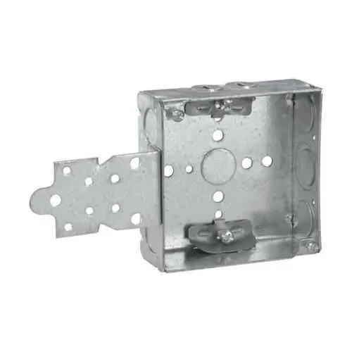 TP446 Eaton: Eaton Crouse-Hinds series Square Outlet Box, (1) 1/2", 4", NM clamps, Welded, 1-1/2", Steel, (2) 1/2", (1) 1/2", (1) 3/4" E, 22.0 cubic inch capacity