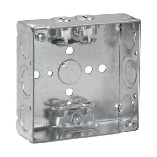 Feature: Welded steel construction provides a rigid, vibration-resistant enclosure. Business Impact: reduces field maintenance, minimizes joint leakage, and extends service life in demanding environments. Application: ideal for high-vibration equipment enclosures and panel boxes in manufacturing lines. Feature: 22 cubic inches of capacity in a 4 inch box. Business Impact: allows more space for terminations, splices, and devices, reducing crowding and wiring errors. Application: control cabinets and equipment housings with multiple conductors. Feature: AC/MC clamps included. Business Impact: speeds wiring, lowers parts count, and improves termination consistency. Application: quick conduit runs in new installs or retrofits. Feature: Knockouts (side and bottom) with E options. Business Impact: flexible termination layouts and compatibility with various conduit configurations. Application: adaptable for diverse factory layouts and equipment footprints. Feature: Welded steel, 0.81 lb weight. Business Impact: robust protection with manageable on-site handling and installation; supports long service life in harsh environments. Application: portable or fixed enclosures in manufacturing and process industries. Feature: NEC/CEC compliance and UL certification. Business Impact: demonstrates regulatory alignment, reducing risk during audits and installations. Application: North American facilities requiring formal standards conformity.