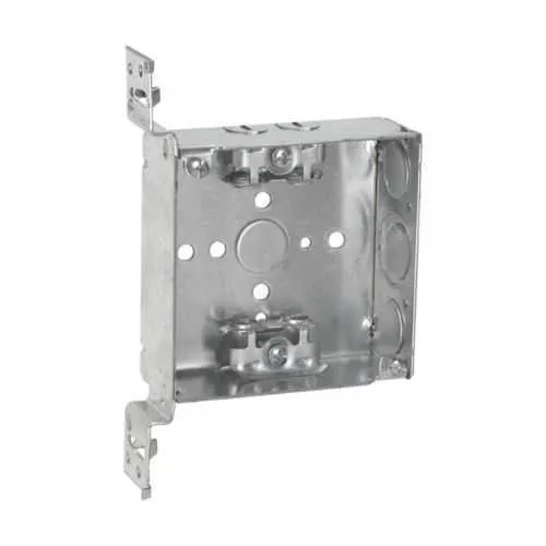 TP459 Eaton: Eaton Crouse-Hinds series Square Outlet Box, (1) 1/2", 4", VMS, 4, AC/MC clamps, Welded, 1-1/2", Steel, (2) 1/2", (1) 1/2", (1) 3/4" E, 22.0 cubic inch capacity