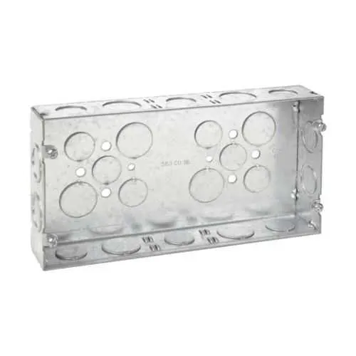 Feature: Three-gang steel enclosure with a 58 cubic inch capacity supports multiple conductors and devices in a compact footprint. Business impact: This combination reduces the need for larger panels and extra fittings, lowering material costs and simplifying panel layouts. Application: Ideal for control panels, junction boxes, and equipment enclosures in industrial facilities where space is at a premium and reliability is required. Feature: Versatile knockouts arranged for flexible routing — end knockouts (1/2 in and 3/4 in), side knockouts (3x 1/2 in and 2x 3/4 in), and bottom knockouts (6x 1/2 in and 4x 3/4 in). Business impact: Enables fast wiring and reduces field modifications by accommodating typical conduit schedules while maintaining a neat, code-compliant installation. Application: Suitable for control wiring runs in machine panels and electrical cabinets. Feature: Rugged steel construction delivers durability and impact resistance suitable for harsh industrial environments. Business impact: Longer service life and lower maintenance costs, with easy field modifications when upgrading or expanding circuits. Application: Factory floors, process lines, and outdoor or partially protected installations where enclosure integrity matters. Feature: Compliance and certifications include NEC/CEC standards and UL certifications for steel outlet boxes, with ordinary/non-hazardous locations endorsement and cross-border Canada recognition. Business impact: Reduces regulatory risk and accelerates procurement by providing a single, compliant enclosure across projects. Application: Critical for panel builds that require multi-region approval and consistent documentation. Feature: Precise dimensions and weight — 8.63 in length, 4.5 in width, 1.63 in height, and a lightweight 0.58 lb enclosure. Business impact: Easier handling, faster site installation, and minimized shipment costs. Application: Compatible with standard Eaton Crouse-Hinds steel gang boxes and covers, designed to integrate into existing layouts without modification.