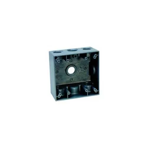TP7102 Eaton: Eaton Crouse-Hinds series weatherproof outlet box, 30.5 cu in, Gray, 2" deep, Die cast aluminum, Two-gang, (5) 1/2" outlet holes, one hole in the back and bottom, three holes across the top
