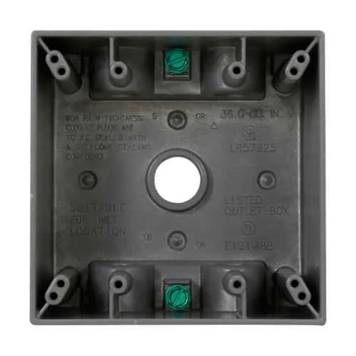 TP7134 Eaton: Eaton Crouse-Hinds series weatherproof outlet box, 37.0 cu in, Gray, 2-5/8" deep, Die cast aluminum, Two-gang, (5) 1" outlet holes