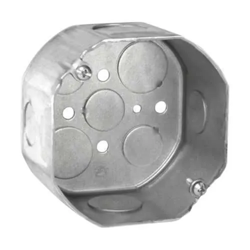 Feature: steel octagon body and 4 inch box size deliver a rugged enclosure that resists impact and accepts multiple conduits. Business Impact: reduces field damage and rework, speeding panel assembly and improving reliability. Application: control panels, junction boxes, and equipment enclosures in harsh industrial environments. Feature: 21.5 cubic inches of capacity and bottom knockouts (3x 1/2 in, 2x 3/4 in) for flexible wiring. Business Impact: enables neat, code-compliant wiring and minimizes the need for additional enclosures. Application: multi-conduit layouts for machines and equipment. Feature: NEC/CEC compliance and UL certification for ordinary locations. Business Impact: simplifies audits and lowers regulatory risk. Application: plant floors and non-hazardous areas. Feature: 0.62 lb weight, 4 in width, 2.13 in height; compatible with covers and bar hangers. Business Impact: easier handling and installation, reduced shipping and labor costs. Application: rapid deployment in evolving control systems. Feature: rugged steel construction resists impact and corrosion while maintaining form factor. Business Impact: long-term reliability and reduced maintenance. Application: industrial automation deployments with steady performance demands.
