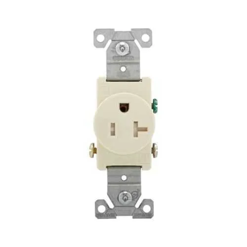 TR1877A-BXSP Eaton: Eaton commercial specification grade single receptacle, #14-10 AWG, 20A, Flush, 125V, Side, Almond, Brass, Impact-resistant thermoplastic face, PVC body, 5-20R, Two-pole, Three-wire, Single, Screw, PVC