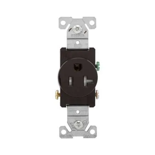 TR1877B-BXSP Eaton: Eaton commercial specification grade single receptacle, #14-10 AWG, 20A, Commercial, Flush, 125V, Side wire, Brown, Brass, Impact-resistant thermoplastic face, PVC body, 5-20R, Single, Screw, PVC, ED Box