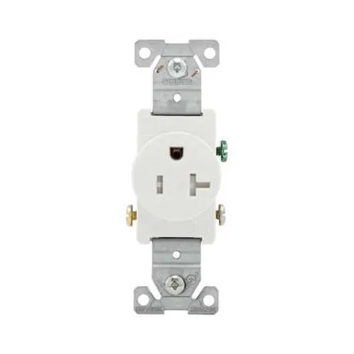 The TR1877W-BXSP is a 20A, 125V single receptacle with a 5-20R NEMA configuration. It is designed for standard commercial outlets and supports typical office equipment, computers, and peripheral devices compatible with 125V circuits.