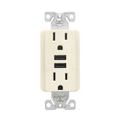 TR7765LA-KB-LW Eaton: Eaton combination 3.6A USB charger with duplex receptacle, 15A, 125V, LA/V