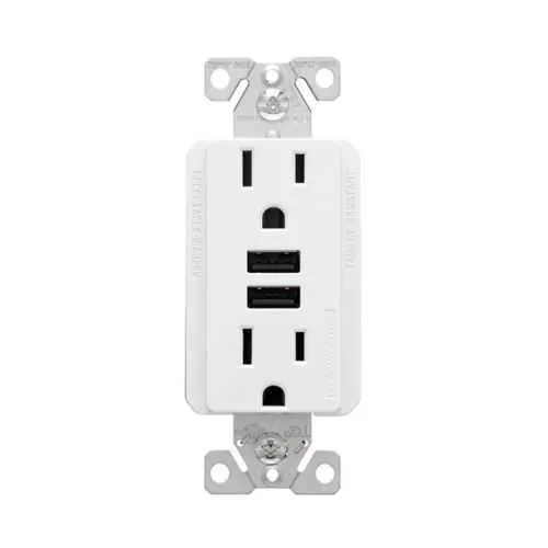 The unit consolidates USB charging with a duplex receptacle in a single flush-mounted device, reducing parts count and installation time. It saves panel space, lowers wiring complexity, and minimizes maintenance overhead by providing a reliable, code-compliant charging outlet within critical enclosures, contributing to faster deployments and improved operator productivity.