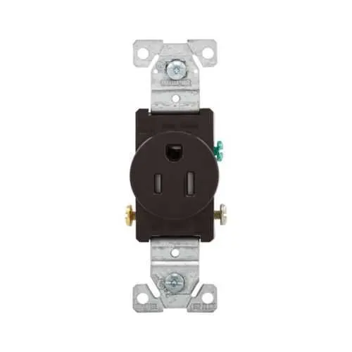 TR817B-BOX Eaton: Eaton commercial specification grade single receptacle, #14-10 AWG, 15A, Commercial, Flush, 125V, Side wire, Brown, Brass, Impact-resistant thermoplastic face and back body, 5-15R, Single, Screw, PVC, ED Box