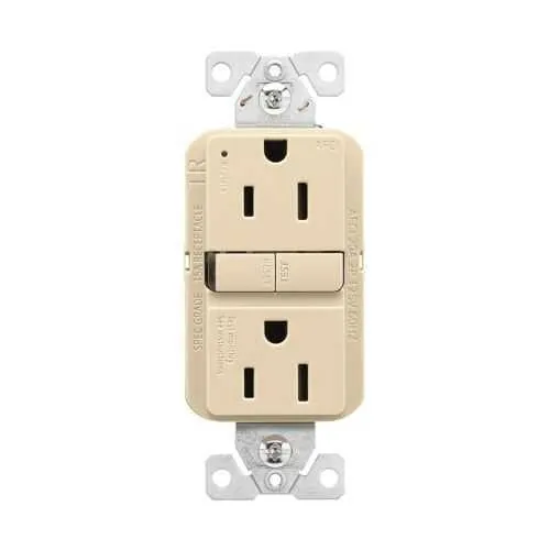 Slim, flush-mount form factor saves wall space and simplifies wall-box wiring, enabling neater installations in retrofit and new-construction projects. Feature → Business Impact → Application: Reduces box fill and profile intrusion in tight spaces, helping electricians meet code while accelerating wall finishing and cover plate installation in residential and light commercial outlets. The unit includes a visual trip indicator light, providing immediate status visibility for maintenance teams and end users, which translates to faster troubleshooting and improved safety during fault events in both homes and offices. Back and side wiring support for #14 - 10 AWG wires offers flexible terminations, reducing call-backs on site and enabling cleaner field terminations in retrofit projects. Brass contact material and 16 lbf-inch torque rating ensure durable, low-resistance connections, improving long-term reliability in constantly used receptacles. Tamper-resistant and ivory PVC/polycarbonate construction deliver robust, code-compliant performance across diverse environments, with cULus Listed certification reinforcing regulatory compliance for residential and commercial installations. NEMA 5-15R compatibility and flush-mount mounting method support quick deployment in standard wall boxes, minimizing labor time and ensuring consistent electrical safety across fleets of outlets.