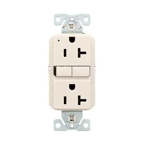TRAF20LA Eaton: Eaton slim AFCI receptacle, tamper resistant, #14 - 10 AWG, 20 A, residential, commercial, flush, 125 V, AFCI, back and side wire, light almond, brass, polycarbonate, 5-20R, two-pole, three-wire, grounding