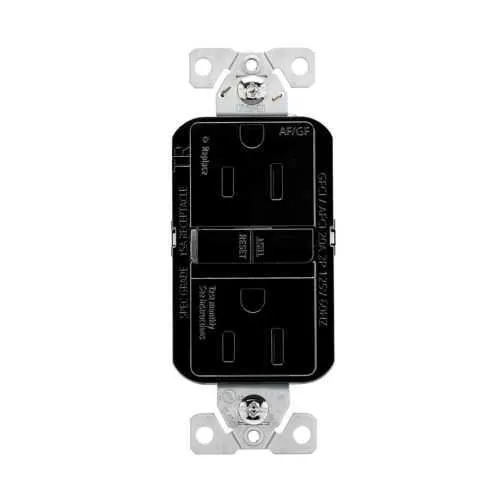 TRAG15BK Eaton: Eaton slim AFGF receptacle, tamper resistant, self-test, #14 - 10 AWG, 15 A, residential, commercial, flush, 125 V, AFGF, back and side wire, black, brass, polycarbonate, 5-15R, two-pole, three-wire, grounding