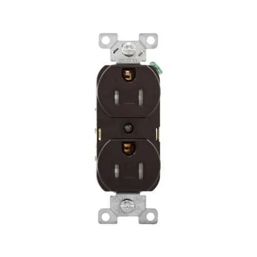 TRBR15B-BXSP Eaton: Eaton commercial specification grade duplex receptacle, #14-10 AWG, 15A, Commercial, Flush, 125V, Back and side, Brown, Brass, Impact-resistant nylon face, PVC body, 5-15R, Duplex, Screw, PVC, ED Box