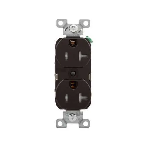 TRBR20B-BXSP Eaton: Eaton commercial specification grade duplex receptacle, #14-10 AWG, 20A, Commercial, Flush, 125V, Back and side, Brown, Brass, Impact-resistant nylon face, PVC body, 5-20R, Duplex, Screw, PVC, ED Box