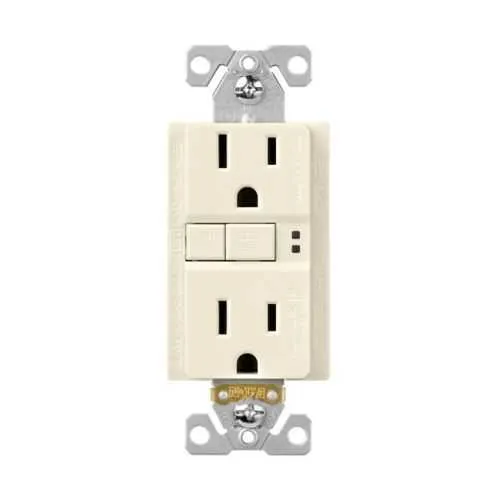 Feature: 15A, 125V GFCI with self-test. Business Impact: Delivers reliable ground-fault protection that helps meet code requirements while minimizing downtime from nuisance faults. Application: Ideal for residential and commercial outlets in offices, schools, and hospitality environments. Feature: Tamper-resistant and NAFTA compliant. Impact: Reduces accidental contact and simplifies cross-border procurement with consistent compliance. Application: Suitable for high-traffic areas where safety and regulatory alignment matter. Feature: Back and side wiring for #14-10 AWG. Impact: Facilitates versatile installation and faster terminations, saving labor costs. Application: New installations and upgrades in retrofit projects. Feature: Flush, 2-pole, 3-wire grounding, NEMA 5-15R. Impact: Clean fit in standard electrical boxes with reliable grounding. Application: Residential and commercial outlets in wall plates. Feature: Brass contact material, PVC/polycarbonate face/body; light almond finish. Impact: Durable contacts and housing with easy coordination to existing interiors. Application: Daily-use environments across commercial spaces. Feature: Torque rating of 16 lbf-in. Impact: Ensures secure connections and consistent performance. Application: Field installation and service.