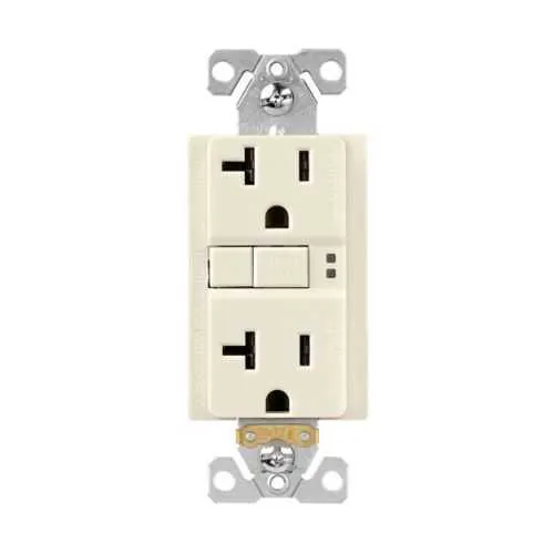 Feature: Self-test GFCI capability ensures ongoing fault detection and auto-verification of protection. Business Impact: Reduces maintenance checks and unexpected outages, improving safety compliance and facility reliability. Application: Ideal for kitchens, bathrooms, and other moisture-prone areas in residential and light commercial environments. The self-test feature minimizes downtime by alerting technicians to degradation before a fault occurs. Feature: Back and side wiring accepting #14–10 AWG conductors. Business Impact: Speeds wiring, reduces field errors, and shortens installation cycles. Application: Retrofit projects and new builds where conductor routes vary or space is constrained. Feature: NEMA 5-20R, 125 V, 20 A configuration with brass contact surfaces. Business Impact: Improves plug compatibility and current-carrying reliability, cutting service calls due to poor connections. Application: Office spaces, hospitality areas, and retail locations needing robust, standard receptacles. Feature: Tamper-resistant polycarbonate face and flush-mount design. Business Impact: Enhances safety, vandal resistance, and code compliance while maintaining a clean wall profile. Application: High-traffic commercial corridors and family housing where aesthetics and protection matter. Feature: Torque rating of 16 lbf-in for secure terminations. Business Impact: Reduces loosening under vibration, safeguarding circuit integrity and uptime. Application: Environments with fluctuating loads or frequent equipment start-ups, such as mechanical rooms and data-adjacent spaces.