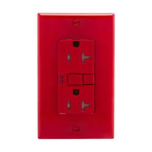 TRSGF20FRD Eaton: Eaton GFCI receptacle,NAFTA compliant,Self-test,#14 - 10 AWG,20A,Residential,Commercial,Flush,125 V,GFCI,Back and side wire,Red,Brass,Receptacle,Tamper resistant,Polycarbonate,5-20R,Two-pole, three-wire, grounding