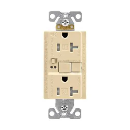 Feature: Audible alarm and self-test provide immediate fault indication and continuous compliance verification. Business Impact: Reduces downtime and regulatory risk by confirming protective function is active without manual testing. Application: Ideal for kitchens, bathrooms, and labor-intensive commercial spaces where reliability is critical. Feature: Tamper-resistant design enhances child safety and reduces incidental contact in high-traffic areas. Business Impact: Improves safety ratings and lowers risk of accidental shocks, supporting insurance and compliance objectives. Application: Schools, healthcare facilities, and multi-tenant offices. Feature: Back and side wiring for #14 - 10 AWG conductors. Business Impact: Simplifies field installation, saves time during wiring runs, and minimizes rework. Application: Retrofit projects and new installations in retrofit boxes. Feature: NEMA 5-20R, 125V, 20A configuration with flush mount and ivory polycarbonate body. Business Impact: Delivers robust, space-efficient outlets with a professional look and long service life. Application: Residential and light commercial circuits requiring reliable 20A protection. Feature: Brass contact material and 16 lbf-inch torque rating ensure durable, low-resistance connections. Business Impact: Enhances longevity and consistency of trip performance in demanding environments. Application: High-use outlets in kitchens, utility rooms, and workspaces. Feature: Certifications NOM, CSA, UL Listed, cULus Listed provide regulatory alignment and market readiness. Business Impact: Accelerates project approval and reduces procurement risk. Application: Global/North American builds with strict safety standards.