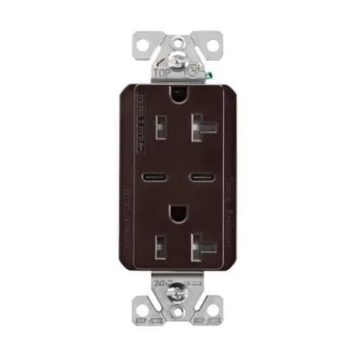 TRUSBC20B-BOX Eaton: Eaton Combination USB Type-C Charger, 20A 5-20R Receptacle, 5A, 125 Vac, Brown, Box