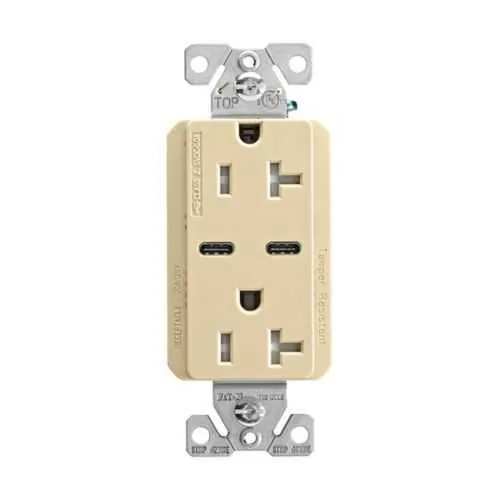 TRUSBC20V-BOX Eaton: Eaton Combination USB Type-C Charger, 20A 5-20R Receptacle, 5A, 125 Vac, Ivory, Box