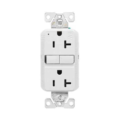 Feature 1: Self-test GFCI with tamper-resistant and weather-resistant construction provides reliable protection in challenging environments. Business impact: lowers maintenance labor and minimizes nuisance trips, enabling safer, faster commissioning in outdoor or damp locations. Application: outdoor outlets and indoor washdown areas where space is at a premium and safety is non-negotiable. Feature 2: Back and side wiring support for #14-10 AWG conductors with a 16 lbf-in torque rating ensures secure terminations. Business impact: reduces rework, improves connection integrity, and helps meet NEC requirements during installation. Application: new builds and retrofit panels in commercial facilities. Feature 3: NEMA 5-20R configuration with 20A/125V rating delivers standard compatibility for common receptacle outlets. Business impact: simplifies procurement, supports uniform wiring devices across projects, and accelerates stocking with bulk packaging. Application: large-scale deployments in government, education, and industrial facilities. Feature 4: Slim design and white finish maximize space utilization and aesthetics in crowded enclosures. Business impact: reduces panel footprint, eases labeling and maintenance, and improves long-term reliability. Application: retrofit upgrades and new installations in constrained spaces. Feature 5: Certifications and FedSpec alignment support regulatory compliance. Business impact: lowers risk during audits and expedites government and regulated-industry deployments. Application: facilities with strict compliance requirements and bulk-supply needs.