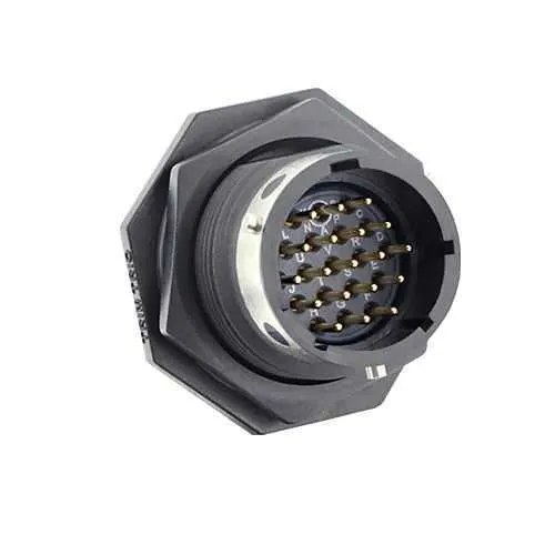 UTGX714D19PW Eaton: Jam nut receptacle, without backshell, with 19 male PCB contacts, IP68/69K in unmated conditions, keying W; UTGX714D19PW