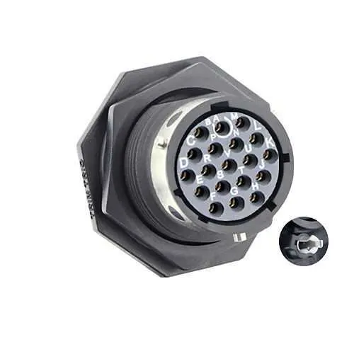 UTGX714D19SW32 Eaton: Jam nut receptacle & hold down clips,without backshell, with 19 female PCB contacts, IP68/69K in unmated conditions, keying W; UTGX714D19SW32