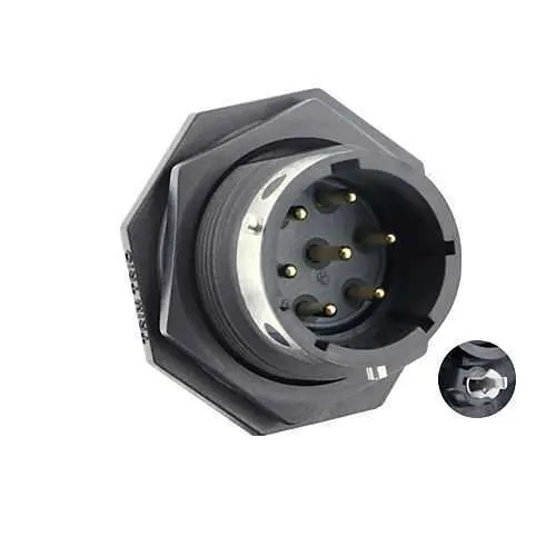Feature: Seven PCB contacts in a D7 layout provide a compact, robust signal path. Business Impact: Reduces PCB routing complexity and improves signal integrity in dense control boards. Application: Ideal for automation controllers and sensor interfaces in rugged machinery. Feature: Jam nut receptacle with ground cavity ensures a secure, EMI-friendly ground connection. Business Impact: Enhances electrical shielding and mating stability under vibration. Application: Motor drives and power-sensing modules in heavy equipment. Feature: 1/3 Bayonet coupling enables fast, reliable mating and ease of field servicing. Business Impact: Cuts downtime during maintenance and reduces labor costs. Application: Production-line equipment and portable instrumentation. Feature: IP68/69K sealing in unmated conditions protects against dust and water ingress. Business Impact: Dramatically lowers field failure rates in wash-down and outdoor installations. Application: Outdoor machinery, marine applications, and food-grade environments. Feature: Wide operating temperature -40 to 105°C and 500 mating cycles demonstrate durability. Business Impact: Supports extended service life and predictable performance across diverse climates. Application: Off-road vehicles, industrial presses, and harsh-environment controls. Feature: Metal & Plastic shell with RoHS and UL94 V0 compliance ensures robust construction and regulatory compatibility. Business Impact: Streamlines procurement and compliance documentation. Application: System integration in regulated industrial environments with strict material requirements.