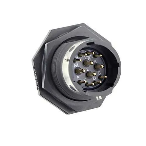 UTGX714E12PX Eaton: Jam nut receptacle, without backshell, with 12 male solder contacts, IP68/69K in unmated conditions, keying X; UTGX714E12PX