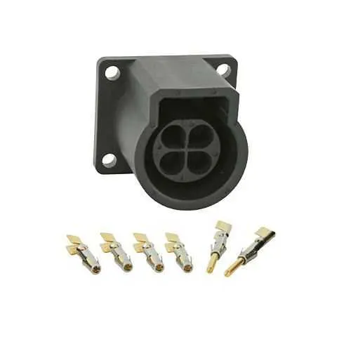 Feature: 4-contact, square flange receptacle with a 3G1 layout provides a compact, panel-mounted solution. Business Impact: Reduces enclosure size while maintaining reliable power and control routing, enabling more compact control cabinets and easier harness routing. Application: Suitable for small automation panels in packaging, material handling, and manufacturing lines where space is a premium and frequent field service is expected. Feature: Push-Pull coupling and first mate last break capability. Business Impact: Enables quick, tool-free mating and safer disconnection for maintenance, minimizing downtime and preserving connector integrity after repeated cycles. Application: Field service, test benches, robotic cells, and line-side equipment where rapid connect/disconnect is essential. Feature: IP68 sealing and rugged materials (polyamide insert, plastic shell). Business Impact: Provides robust protection against dust and water ingress, extending service life in outdoor, automotive, and chemical plants; reduces warranty costs and downtime. Application: Outdoor enclosures, washdown environments, and offshore equipment. Feature: Electrical ratings 16 A UL/16 A IEC, up to 600 V UL / 500 V IEC; 4 cavities; 1000 mating cycles. Business Impact: Supports standard control-power loads with predictable life, enabling longer service intervals and lower maintenance costs. Application: Industrial machinery, robotics, and control nodes. Feature: RoHS, REACH, UL94 V0, salt spray 1000 h; Fitted with first mate last break capability; ground cavity; unloaded contact delivery; crimp contact type. Business Impact: Streamlines wiring, reduces labor time, and ensures regulatory compliance across supply chains. Application: System integrator panels and OEM equipment in regulated sectors. Feature: 3G1 layout, square flange mount, and compact dimensions (42 mm L x 33.6 mm W x 28.6 mm H). Business Impact: Easy integration with existing panel cutouts and harnesses, lowering engineering time and risk during integration. Application: Retrofit projects and new machine builds in discrete manufacturing and packaging lines.