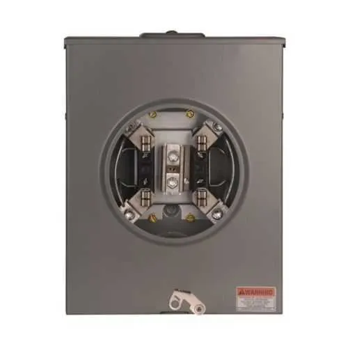 Feature: 200A amperage rating and 600V rating. Business Impact: Provides sufficient headroom for typical residential service loads while maintaining safety margins to prevent nuisance trips and voltage drop. Application: Ideal for single-phase, three-wire residential metering in new or retrofit installations. Feature: Four-jaw, ringless design. Business Impact: Enhances grounding reliability and reduces tampering opportunities, lowering field service calls. Application: Suitable for clean, secure meter connections in dense electrical panels and service equipment. Feature: Top/bottom feed configuration. Business Impact: Flexibility during installation saves time and reduces conduit routing constraints. Application: Compatible with various meter-riser layouts in both new builds and renovations. Feature: Hub cover plate sized at 3-5/16 in. Business Impact: Streamlines coupling with standard service conduits, reducing custom fabrication needs. Application: Faster commissioning in residential service entrances. Feature: Heavy-duty terminals for #8-250 kcmil conductors. Business Impact: Supports high-capacity service conductors with solid crimp/grip reliability, lowering loose-conductor risk. Application: Enables robust line/load connections for extended service life. Feature: Ground connection rated for Cu (#14-#2). Business Impact: Improves grounding integrity, enhancing protection against fault currents and nuisance shocks. Application: Essential for safe operation in all metering environments. Feature: UL Listed with MEG utility approvals. Business Impact: Demonstrates compliance with safety and regional utility requirements, reducing project approvals time. Application: Widely accepted in Duke Energy, Florida Power, Tallahassee Electric, and similar jurisdictions. Feature: Compact dimensions and weight (4.36 in depth, 11 in width, 14 in height, ~9 lb). Business Impact: Easier handling, faster site routing, and simpler inventory management. Application: Suitable for standard meter sockets in distributed residential feeders.
